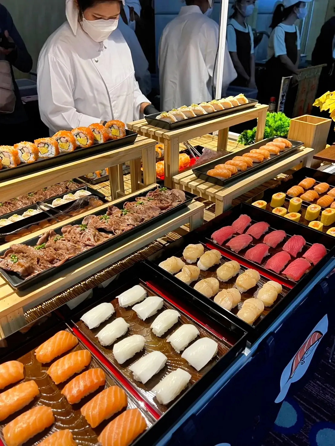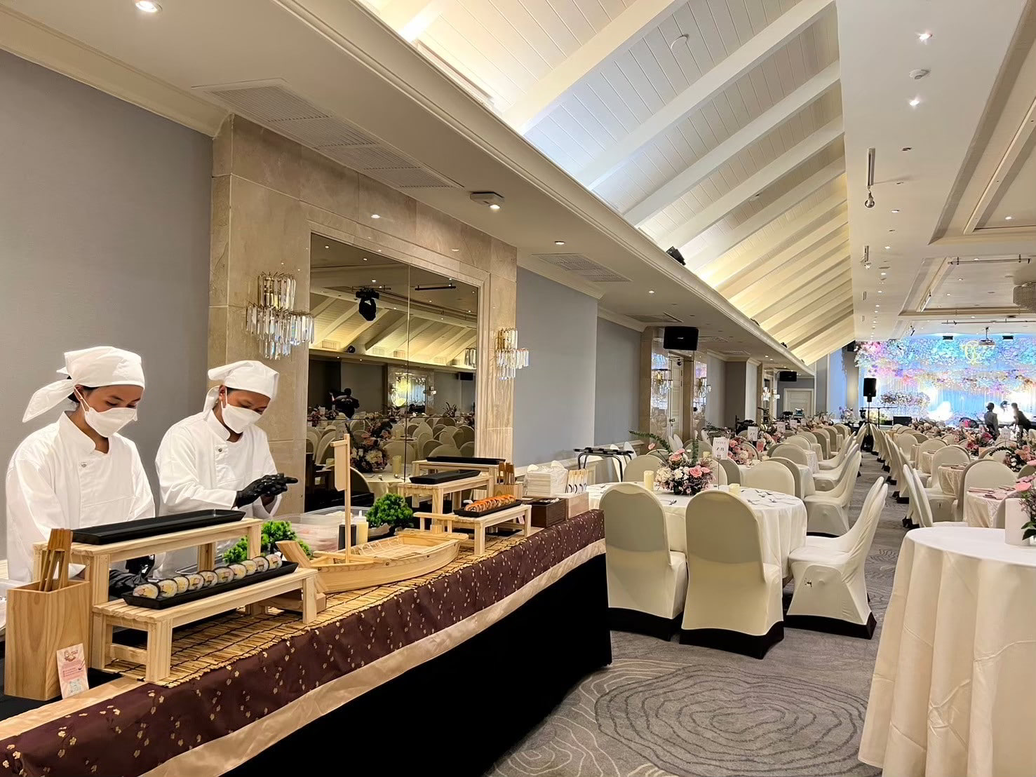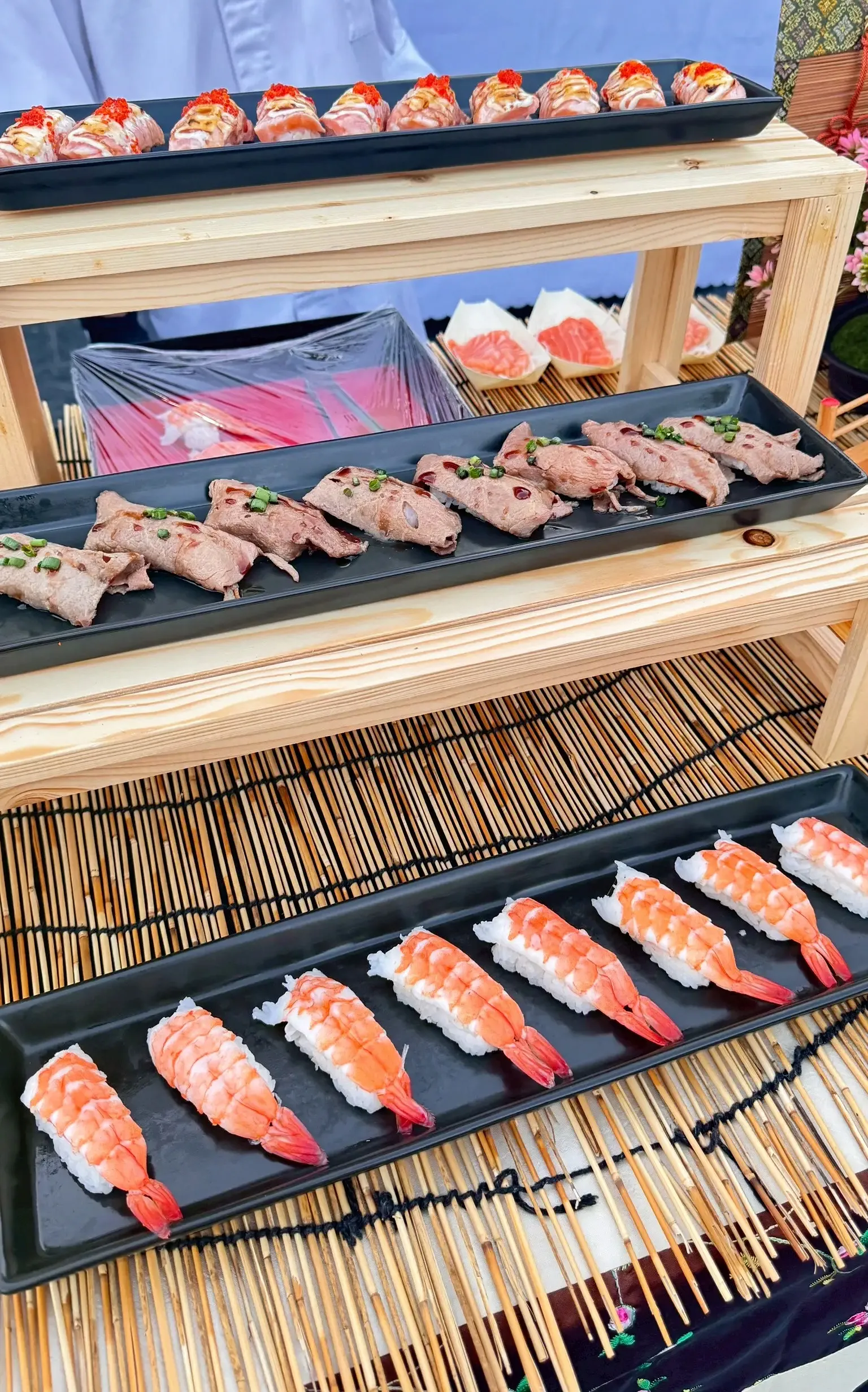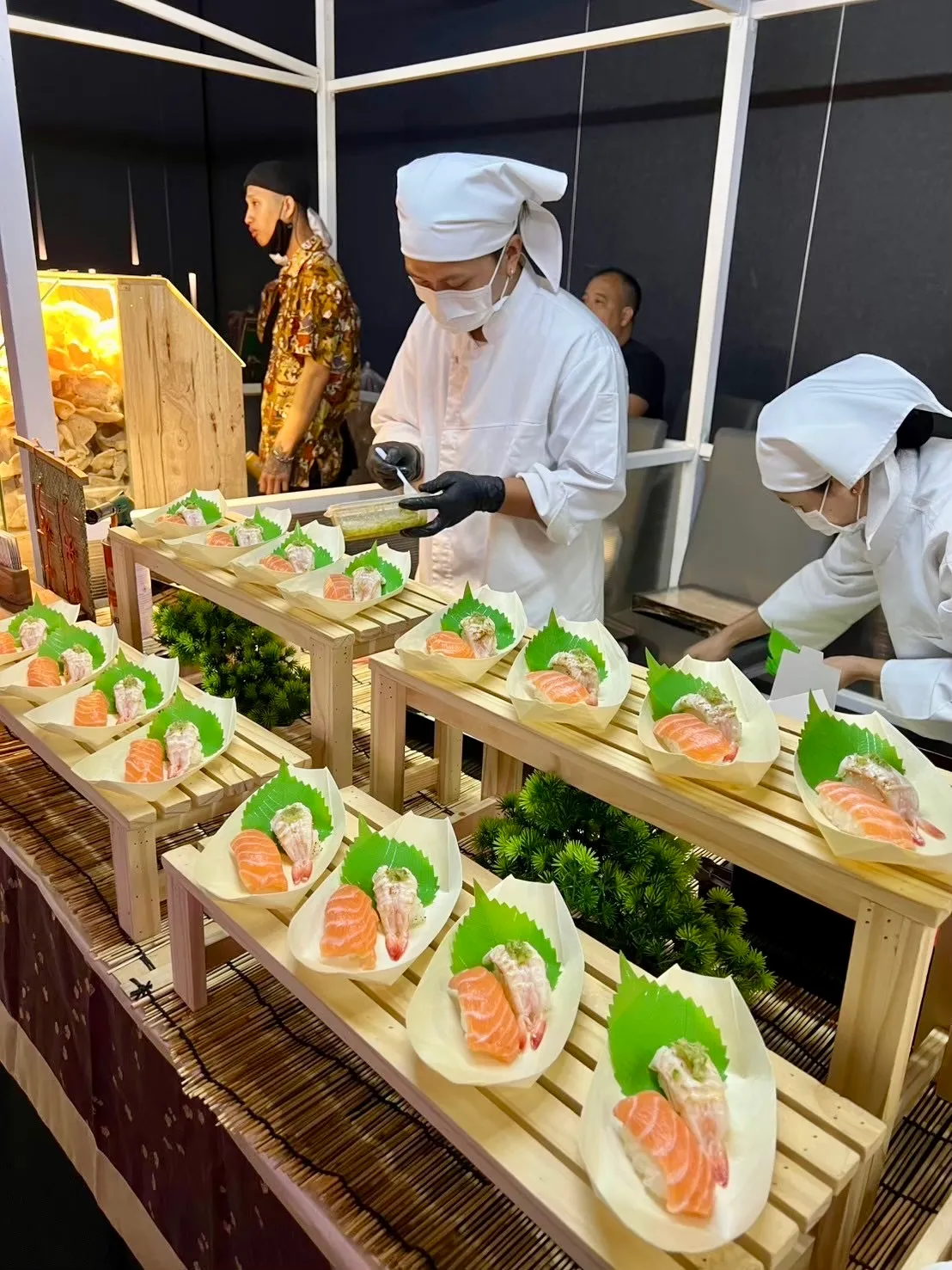 เราเชี่ยวชาญด้าน ซูชิปั้นสดหน้างาน และการจัดรูปแบบ Live Sushi Bar ที่ช่วยให้งานของคุณดูพรีเมียมมากยิ่งขึ้น แขกสามารถสัมผัสประสบการณ์การรับประทานอาหารญี่ปุ่นที่สดใหม่ สะอาด และน่าประทับใจในบรรยากาศของงานได้อย่างลงตัว